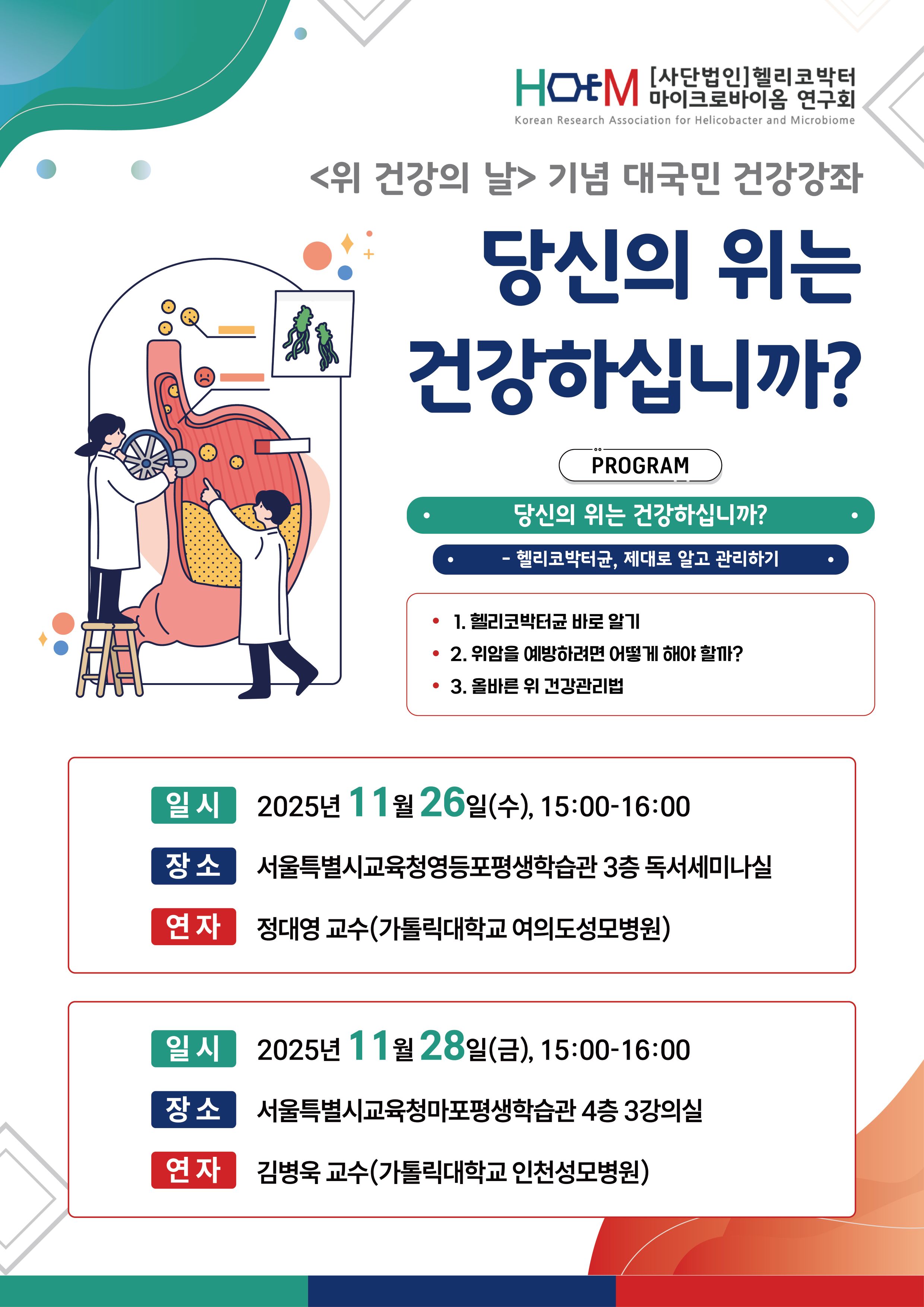 [H&M연구회] 헬리코박터마이크로바이옴연구회 기획 대국민건강강좌 안내 < 당신의 위는 건강하십니까?>